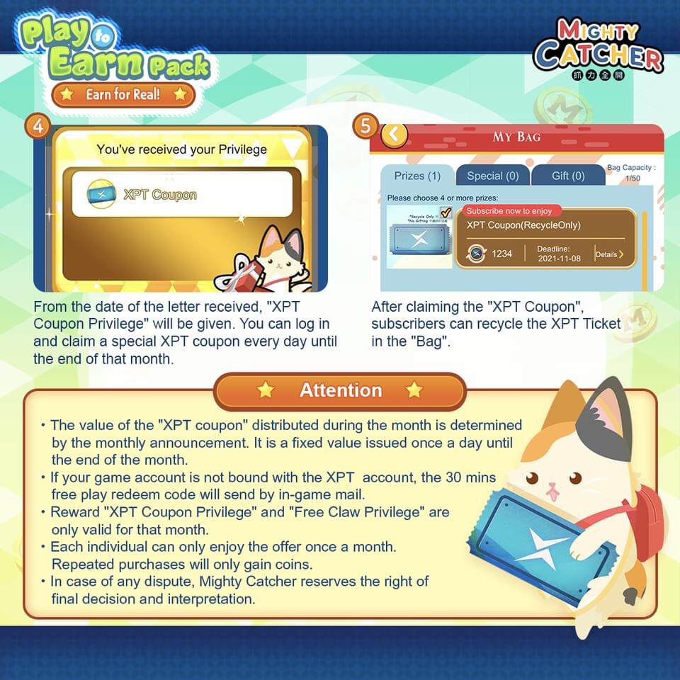 The details of the “Play to Earn Pack” are subject to the in-game announcement. In case of any dispute, Mighty Catcher reserves the right of final decision and interpretation.