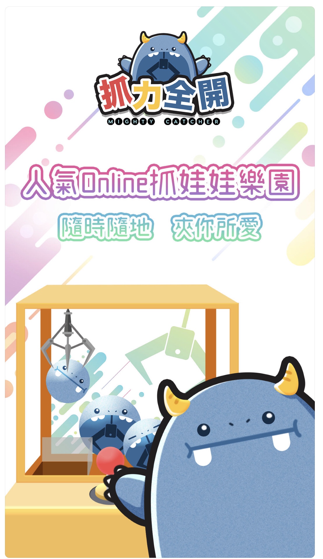 <抓力全開 Mighty Catcher>係一群熱愛夾公仔之士推出香港第一款網上夾公仔 APP, 利用先進技術將傳統夾公仔移植到 online, 用戶足不出戶就能身臨其境暢享抓娃娃樂趣, 引入台灣日本多種玩法, 提供最新最潮之獎品, 解決了香港因租金高企引起的場地限制、 機器數量限制、獎品種類單一等問題。團隊會持續創新和優化產品, 給使用者提供更好的 服務。