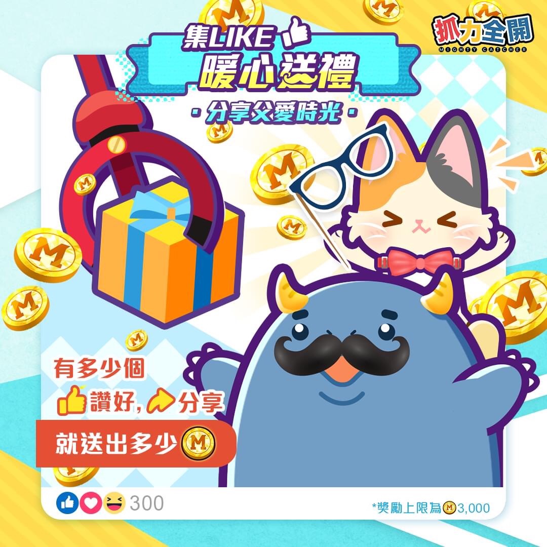 💰獎勵:所有玩家可獲得活動貼文「讚好」及「分享」總數的遊戲金幣 (上限為Ⓜ️3,000)